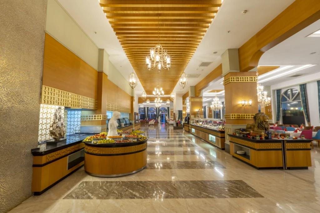 Gjatë qëndrimit tuaj në Jadore Deluxe Hotel & Spa, do të keni mundësinë të shijoni ushqim të ndryshëm dhe të shijshëm, duke përfshirë kuzhinën tradicionale turke dhe atë ndërkombëtare. Hoteli ofron restaurante të ndryshme që ofrojnë shërbim në konceptin e bufe të hapur, dhe nuk mungojnë as restorantet A’la Carte, me një gamë të pasur të ushqimit nga kuzhina botërore.