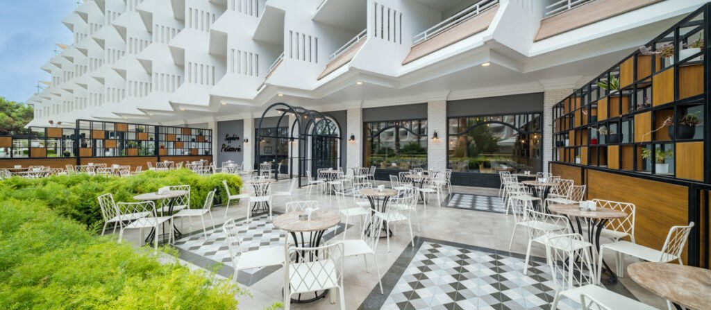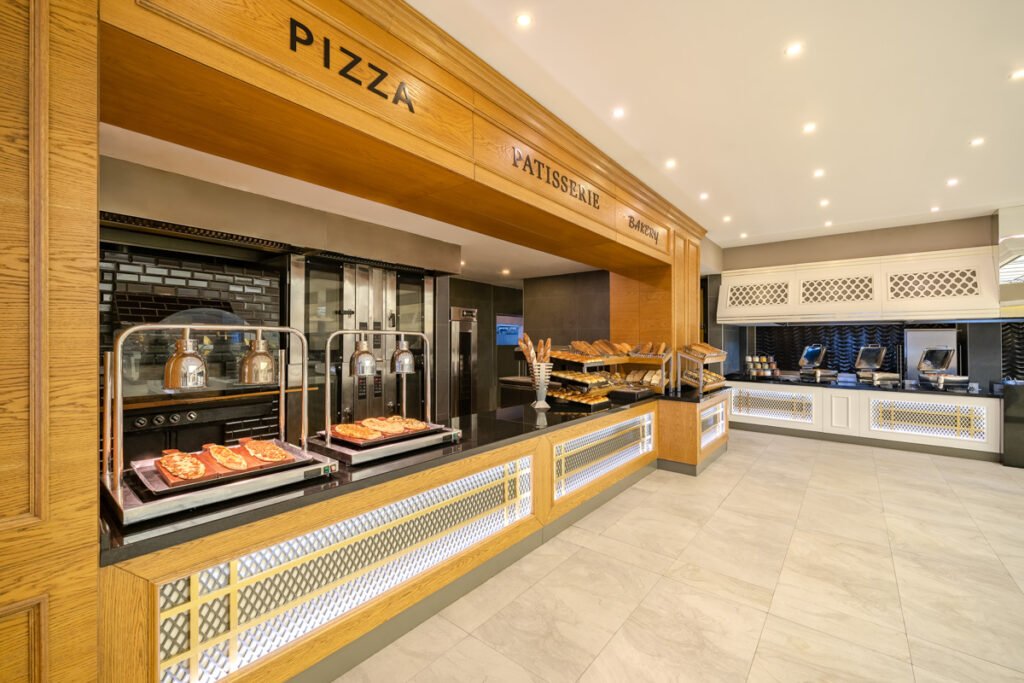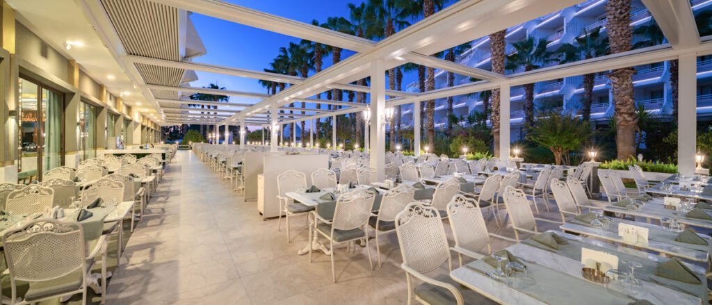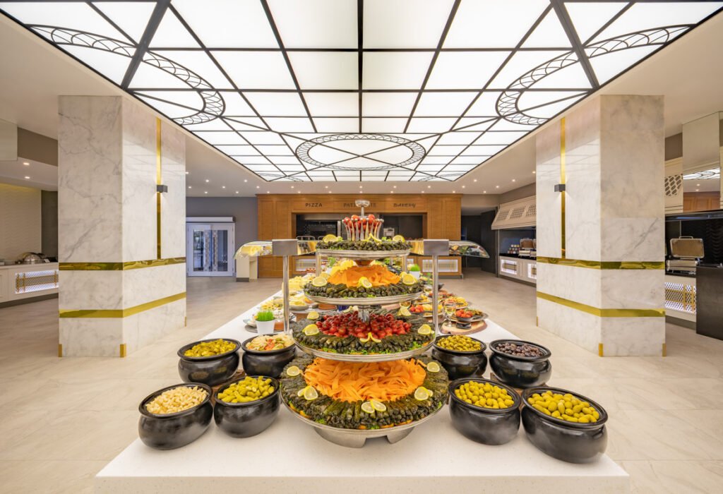 Ushqimi përfshin kuzhinë turke dhe ndërkombëtare, si dhe menu për fëmijë dhe opsione speciale.