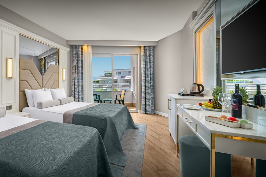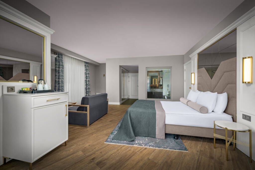 ✔️ Kasafortë, minibar, TV satelitor dhe Wi‑Fi falas në të gjithë resortin