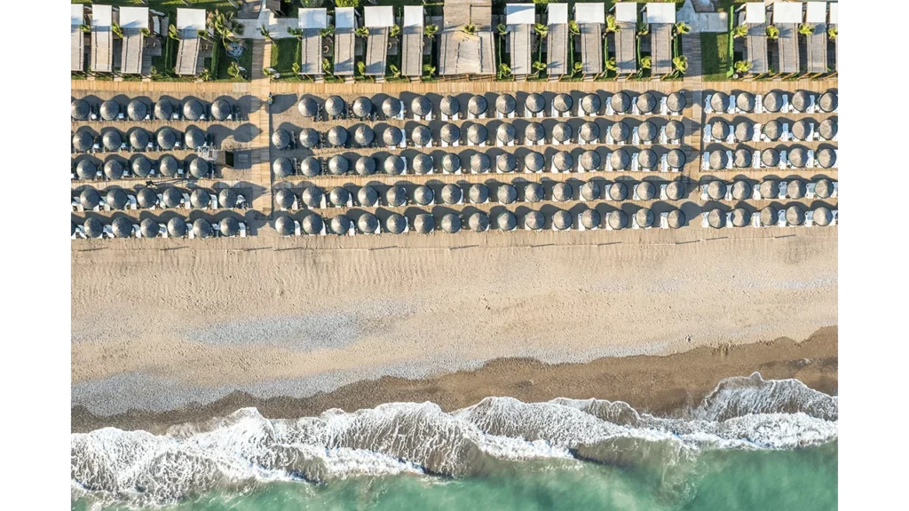 Plazhi i resortit është i vendosur direkt pranë hotelit, me hyrje të lehtë në det dhe: