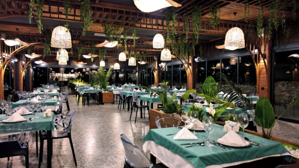 Resorti ka disa restorante dhe bare që ofrojnë shumëllojshmëri ushqimesh dhe pijesh gjatë gjithë ditës.