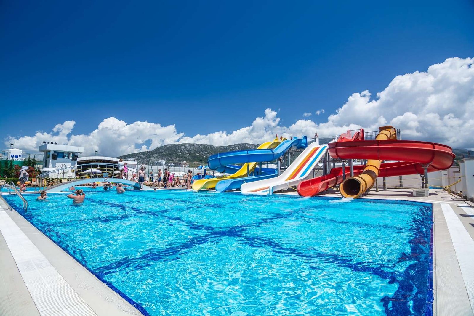 • 💦 Pishinë me tobogane dhe zona për fëmijë